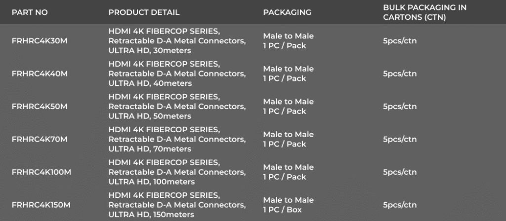 4K HDMI Fibercop Retractable Cable 150 Mtrs