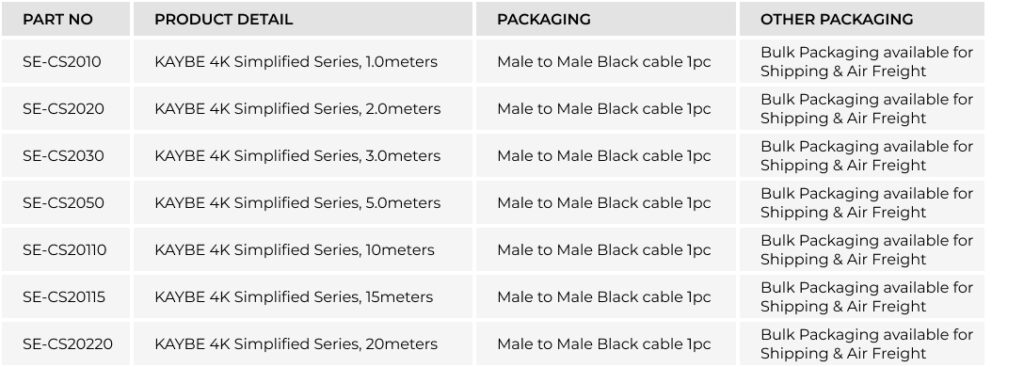 The Kaybe Simplified Series HDMI cable delivers true 4K (3840×2160p) resolution at 30Hz for superior clarity. It ensures optimal digital HDTV transmission with support for Ethernet and Audio Return Channels. Dual shielding minimizes EMI/RFI interference, maintaining stable and high-quality signal transfer. Constructed with a high-grade PVC jacket, it offers enhanced durability and long-lasting performance.