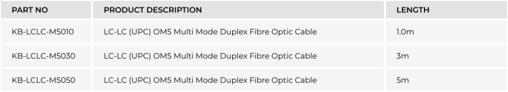 LC-LC (UPC) OM5 Multi Mode Duplex Fibre Optic Cable (KB-LCLC-M50xx)