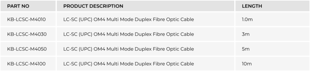 LC-SC (UPC) OM4 Multi Mode Duplex Fibre Optic Cable (KB-LCSC-M40xx)