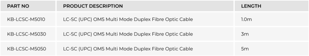LC-SC (UPC) OM5 Multi Mode Duplex Fibre Optic Cable (KB-LCSC-M50xx)