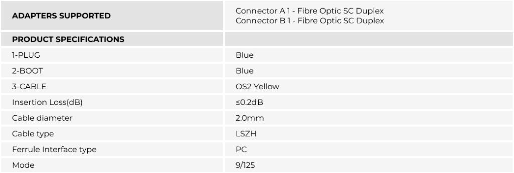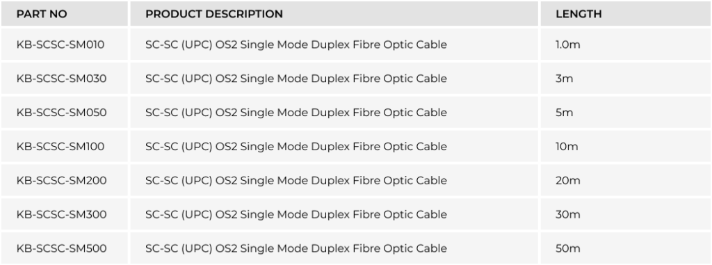 SC-SC (UPC) OS2 Single Mode Duplex Fibre Optic Cable (KB-SCSC-SM0xx)